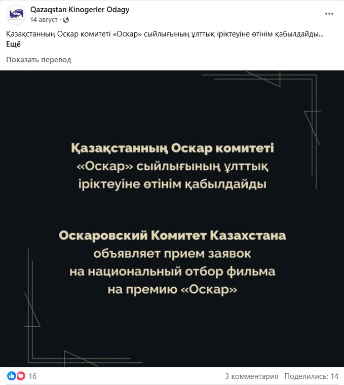 Ақырында, кинематографистер тарапынан ең беделді кино сыйлығында Қазақстан атынан ұсынылатын картинаны іріктеу рәсімінің өзіне де шағым білдірді.